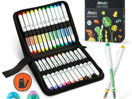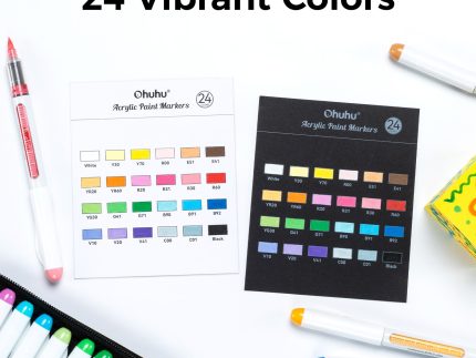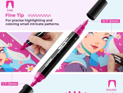 Discover the Ohuhu Acrylic Markers 24 Colors 48 Pack, featuring 24 fine and 24 medium round tip markers in matching vibrant colors. These single-tip m