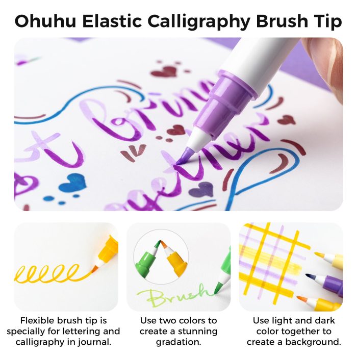 Elevate your art with Ohuhu’s 24 Colors Water-base Calligraphy Brush & Dot Marker Pens! These versatile tools allow for precision and vibrant colo