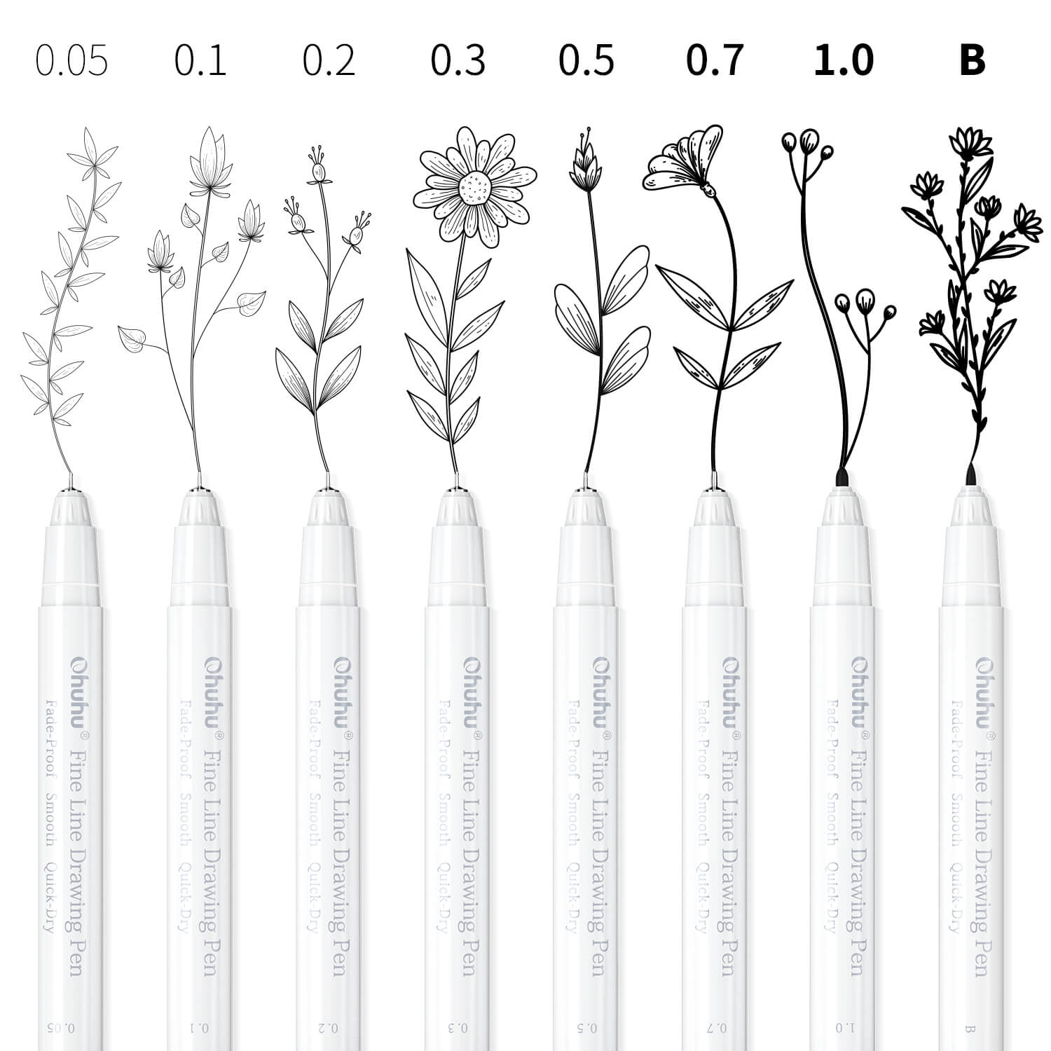 Experience the ultimate artistry with the Ohuhu Fineliner Drawing Pen 8-Pack. This elegant set of eight pens features a variety of tip sizes, allowing