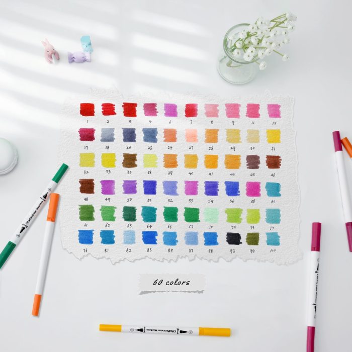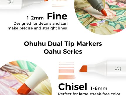 Unleash your creativity with Ohuhu Maui 60 Colors Dual Tips Art Markers! Each marker features a brush tip for smooth strokes and a fineliner tip for p