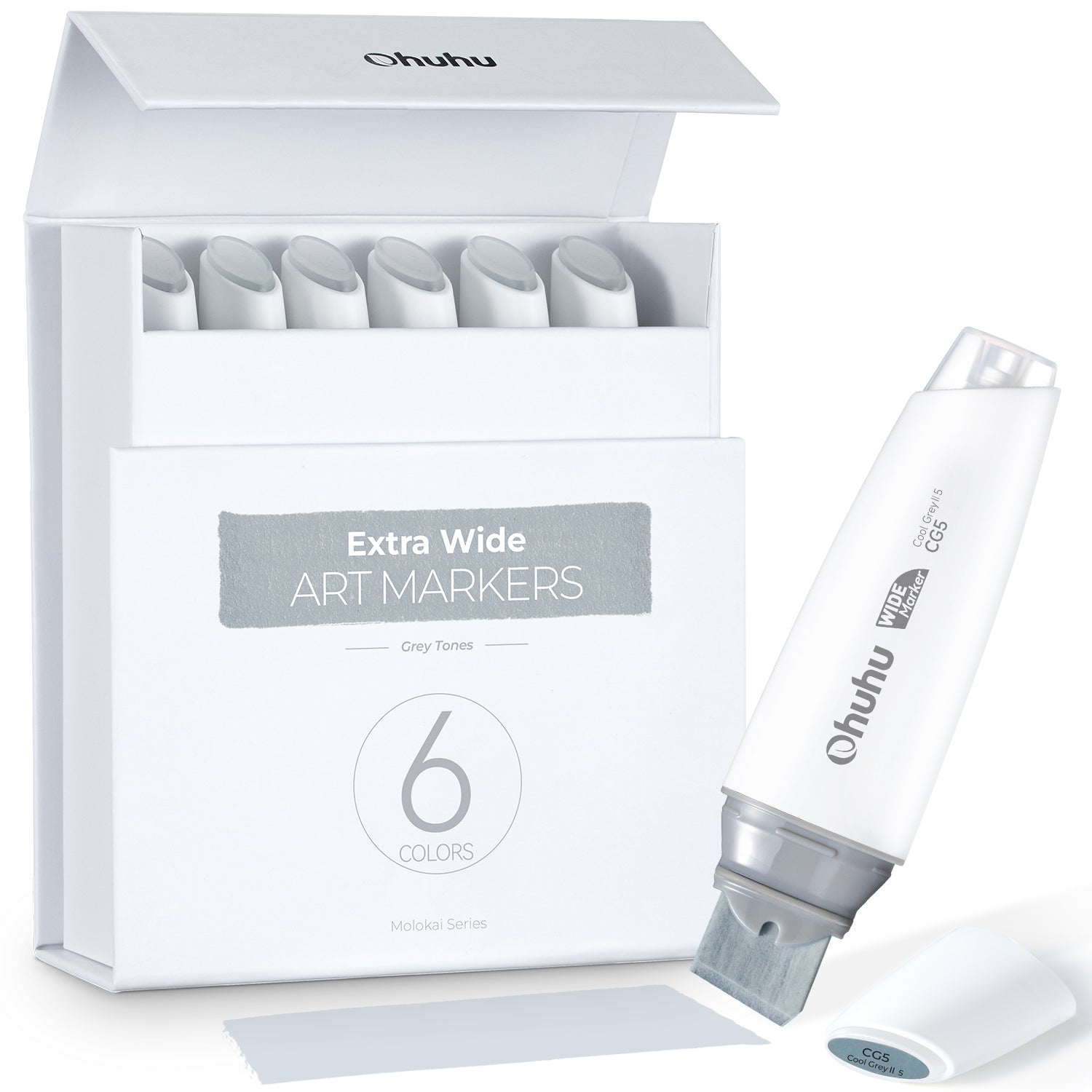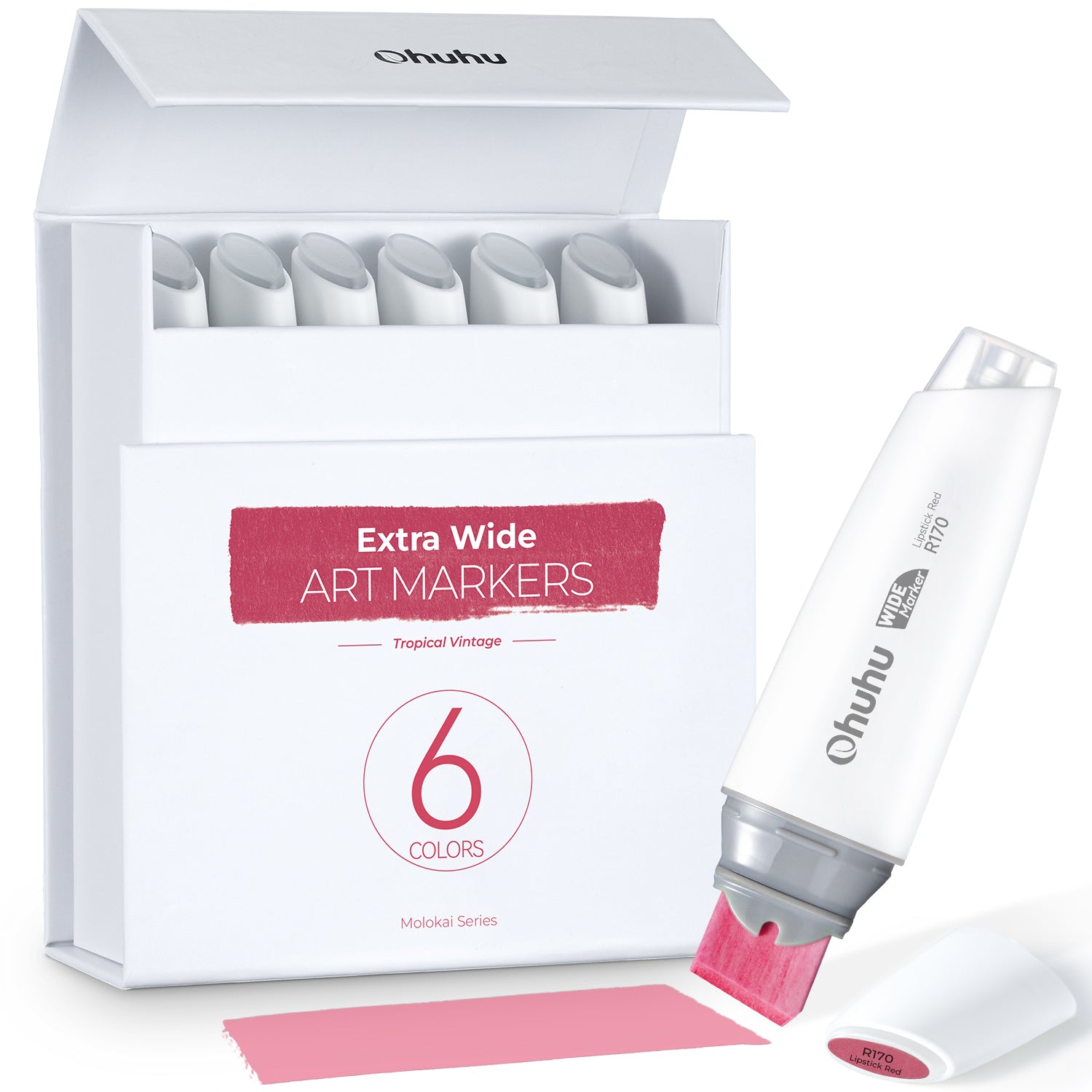 Ohuhu’s Molokai Four Tones Extra-wide Tip Alcohol Art Markers help you create with ease! Their alcohol-based ink blends effortlessly and dries quickly, and their three-in-one tips allow for broad strokes, thin lines, and even shading. With 24 vibrant colors (6 per set) you can easily find the perfect color for any project. Have fun and express yourself with Ohuhu Molokai Markers!