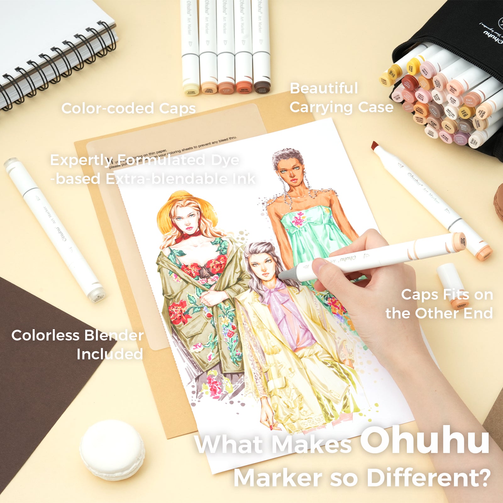 Enhance your artwork with Ohuhu’s Oahu 36 Skin Tone Colors Dual Tips Alcohol Art Markers. Featuring 36 highly-pigmented shades plus a colorless blende
