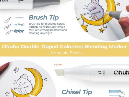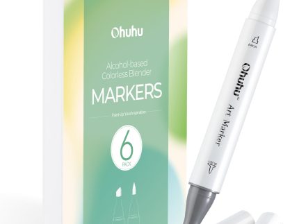 This Ohuhu Honolulu Colorless Blender Marker Pack of 6 allows for precision art-making. Its alcohol-based ink ensures no smudging, and