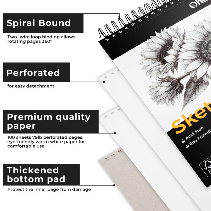 Experience the durability and quality of Ohuhu Tear Resistant Bamboo Fiber Drawing Sketchbook. Made with 55% bamboo fiber, this sketchbook features te
