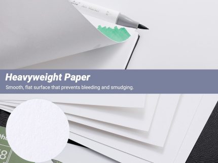 The Ohuhu Bleedproof Double-Sided Marker Pad with PU Cover is designed for artists of all levels, featuring 150GSM (90LB) high-quality paper that prev
